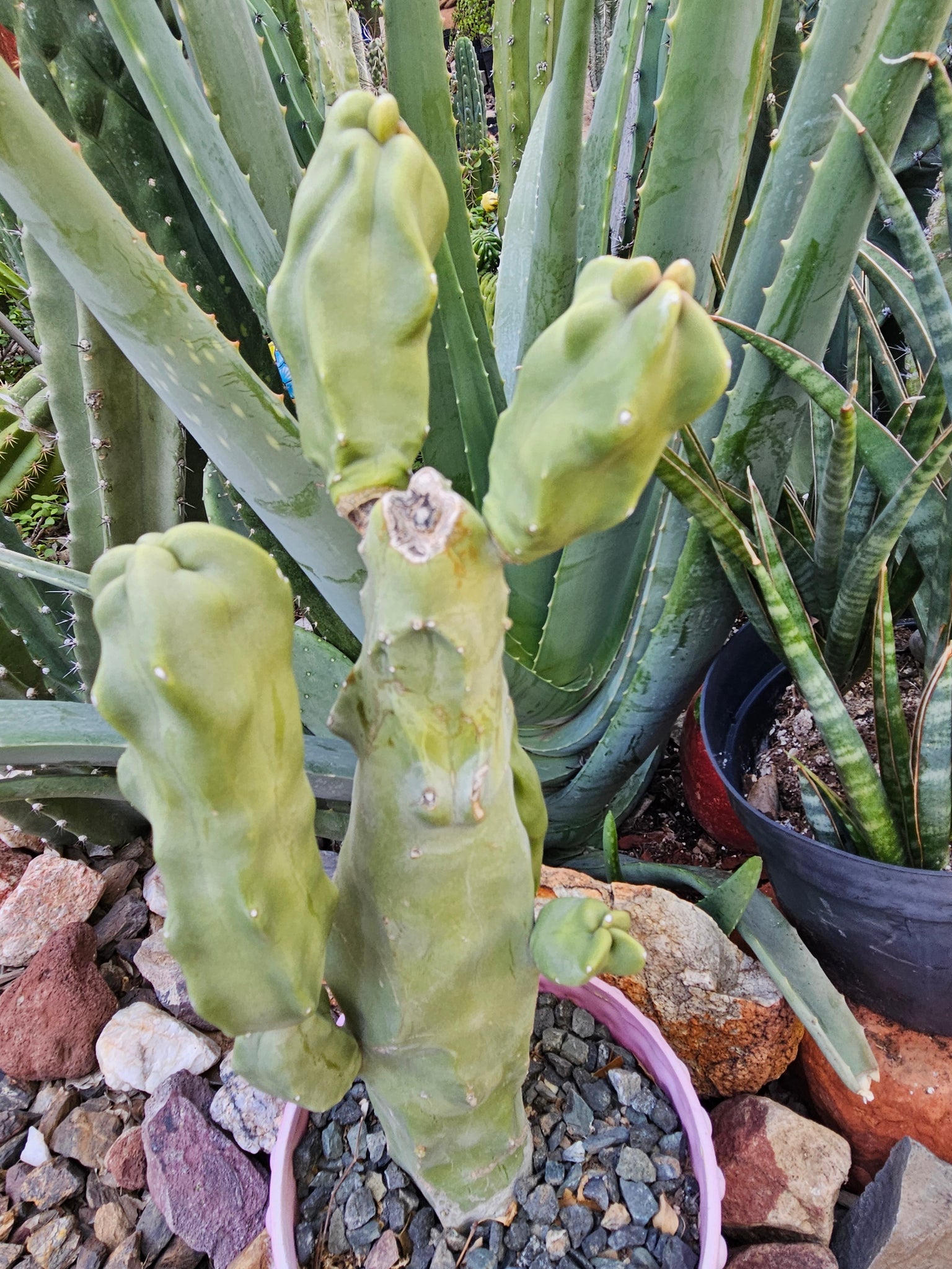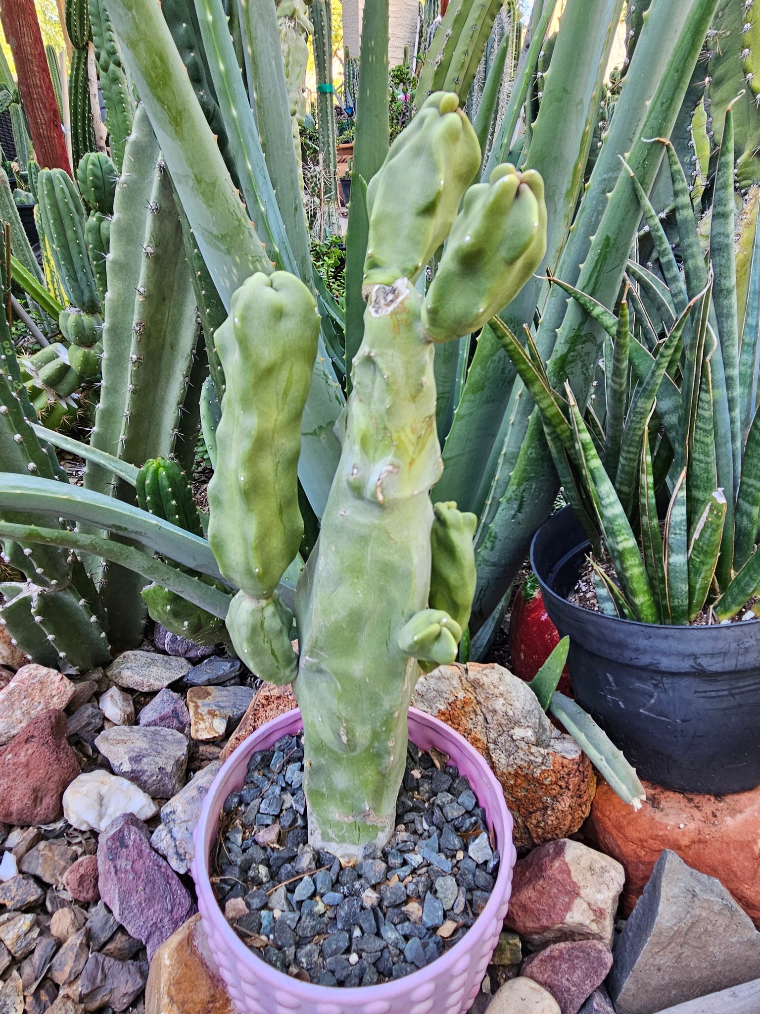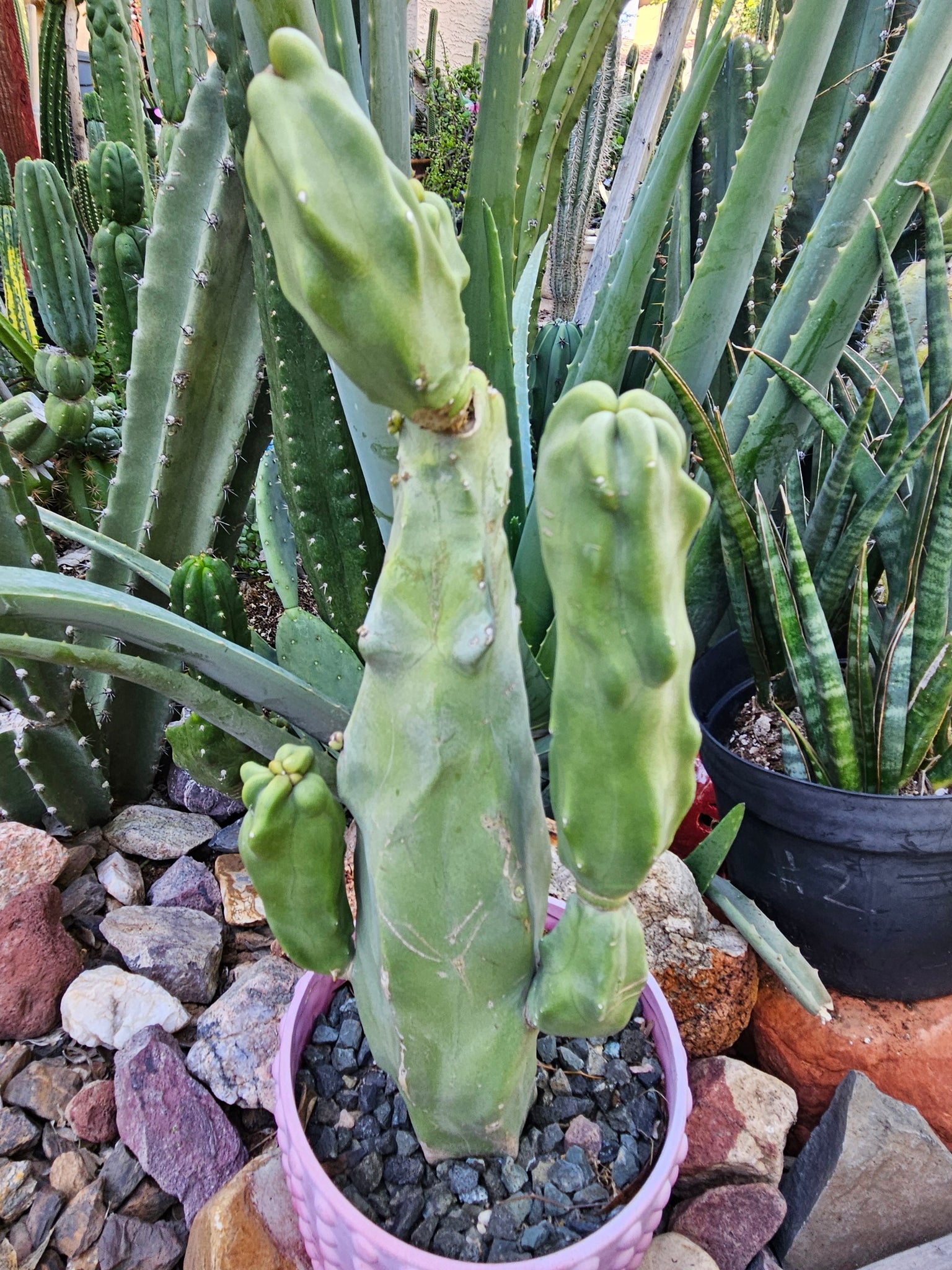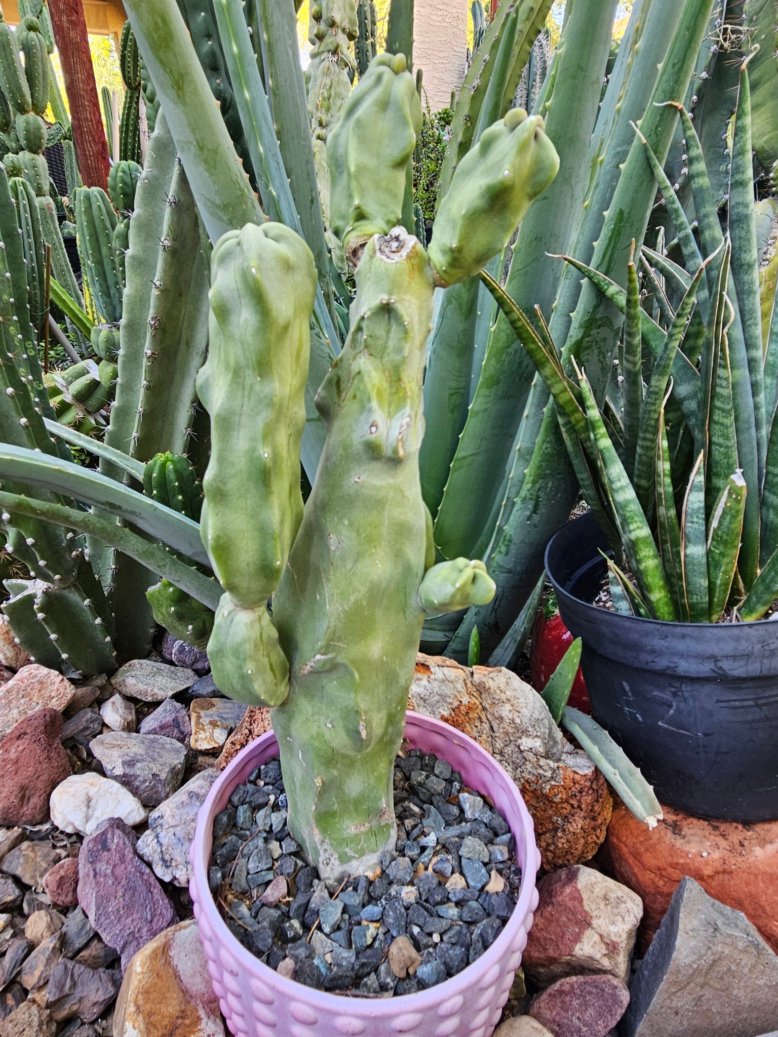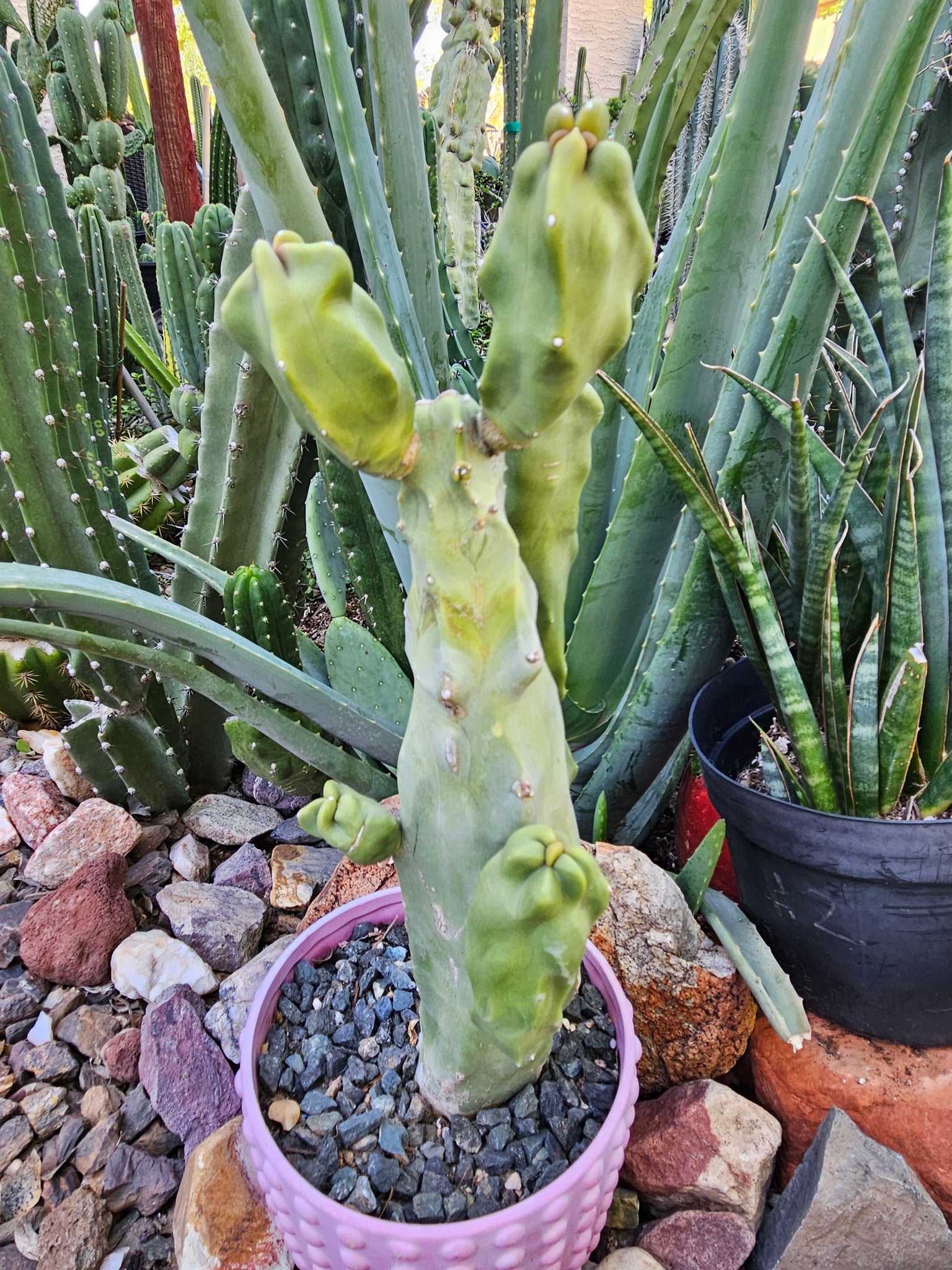 You will receive the cactus shown in photos. This plant will ship bare root, no pot or soil is included with this item. Some of the joints might be a bit weak for shipping, and pups may pop off, but we package carefully to avoid any damage. IF any pups pop off, you can just plant them in soil and they'll root and you'll have another cactus! ;)